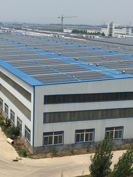 山東鄒城工業(yè)園區(qū)廠房屋頂上安裝的Solibro銅銦鎵硒薄膜組件
