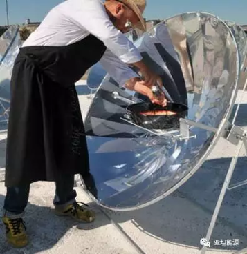 這個與眾不同的餐廳設(shè)在陽光充足的室外,十多個輕便的太陽能灶是露天廚房的唯一能源。廚師們戴著墨鏡在眾多太陽能灶旁忙碌地工作著。他們將土豆切成塊放入鍋中,半小時后土豆就被煮熟了。廚師們隨時調(diào)整著太陽能灶的方向,使它能有效地采集到最強(qiáng)的太陽能。烹調(diào)大師梅拉斯涅米親自掌勺,精心烹飪自己的拿手好菜。