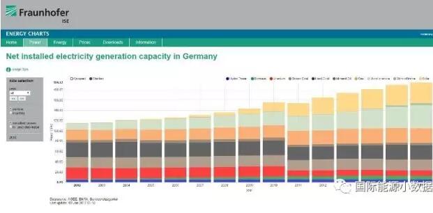 根據(jù)德國Fraunhofer整理的最新數(shù)據(jù),2016年德國電力總裝機(jī)容量達(dá)194.53GW,其中太陽能40.41GW、海上風(fēng)電4.13GW、陸上風(fēng)電44.80GW、天然氣28.27GW、燃油4.19GW、硬煤28.38GW、褐煤20.90GW、核電10.80GW、生物質(zhì)7.06GW、水電5.59GW。與2015年相比,太陽能裝機(jī)凈增1.08GW、陸上風(fēng)電凈增3.55GW、海上風(fēng)電凈增0.70GW,與往年相比太陽能光伏裝機(jī)增長速度已經(jīng)大大下降。