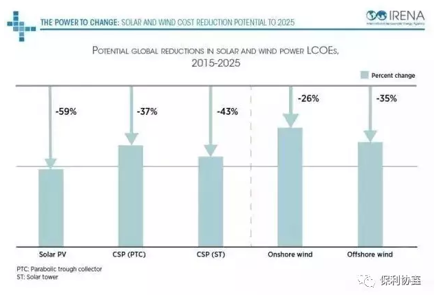中國儲能網(wǎng)訊:國際可再生能源署近日發(fā)布報告預(yù)測,到2025年,太陽能光伏、光熱、陸上和海上風(fēng)電成本將大幅度下降。太陽能光伏到2025年將比2015年下降59%,從13美分/千瓦時降至5.5美分/千瓦時。這份題為《改變的力量:2025年前太陽能和風(fēng)能成本下降潛力》的報告指出,在合理的監(jiān)管和政策框架下,2025年之后,太陽能和風(fēng)能的發(fā)電成本仍有望不斷下降。