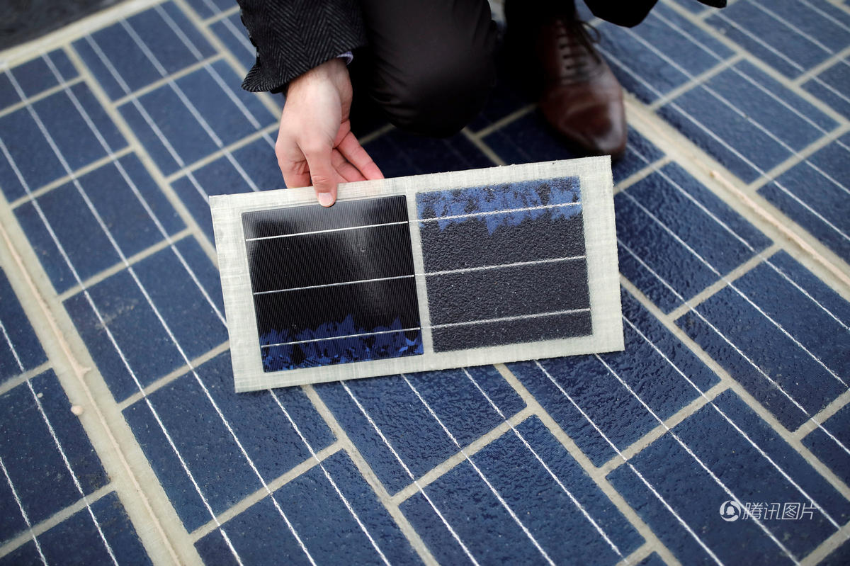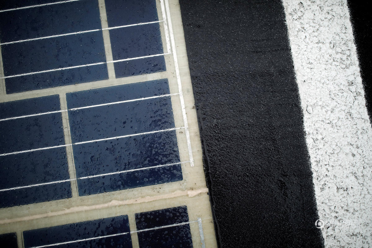 工程人員在涂滿泊油的路上,鋪了幾千米的太陽能面板。其脆弱的光伏板被一種混合聚酯層保護(hù)著,可以經(jīng)得起汽車及各種輕重型車輛經(jīng)常的往來路壓。這種半透明的混合材質(zhì)可以讓陽光透過去,被硅分子吸收進(jìn)去。
