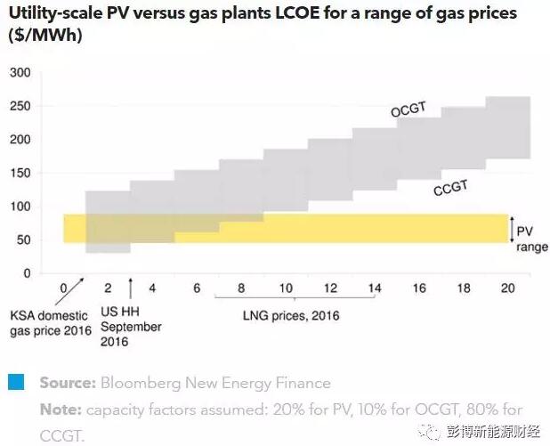 隨著光伏和風(fēng)電系統(tǒng)成本的不斷下降,再加上能源補(bǔ)貼改革的助力,MENA經(jīng)濟(jì)體必須面對(duì)一個(gè)新的可再生能源與經(jīng)濟(jì)發(fā)展環(huán)境。現(xiàn)階段,光伏電廠的發(fā)電成本要低于天然氣進(jìn)口國內(nèi)的天然氣電廠(基本負(fù)荷運(yùn)行下的)成本。即使是在沙特阿拉伯等燃料價(jià)格補(bǔ)貼豐厚的國家,光伏仍是應(yīng)對(duì)峰值電力需求時(shí)最為經(jīng)濟(jì)的方式。