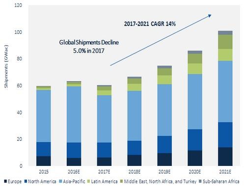 長期來看,GTM Research預(yù)測,到2021年光伏逆變器出貨量將超過100MW,中國市場仍將領(lǐng)先,但份額預(yù)計(jì)下降。中東和東南亞等新興市場將成為在2016年至2021年間增長最快的區(qū)域。