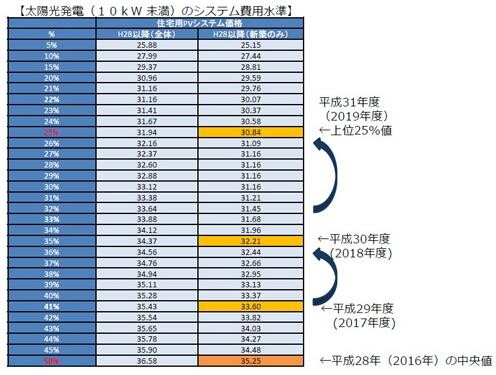 住宅太陽能的系統(tǒng)費用水平(2016年)(出處:經(jīng)濟產(chǎn)業(yè)省)