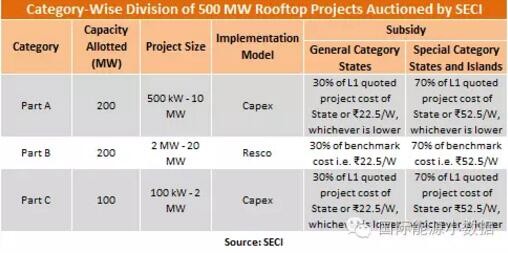 雖然從絕對(duì)值上看這一報(bào)價(jià)是歷史上最低的光伏報(bào)價(jià),已經(jīng)與印度火電公司(NTPC)煤電廠平均上網(wǎng)電價(jià)相當(dāng),但其中已經(jīng)包含了SECI給予屋頂光伏的70%補(bǔ)貼。這個(gè)報(bào)價(jià)適用于北阿坎邦、喜馬偕爾邦以及龐迪切里區(qū)的聯(lián)網(wǎng)屋頂光伏(2-20兆瓦),而其他邦的屋頂光伏報(bào)價(jià)在5.56-6.20盧比/千瓦時(shí)的區(qū)間,其中最高價(jià)6.20盧比適用于旁遮普邦,補(bǔ)貼額為30%。