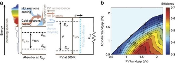通過這種方式,便可將光能和熱能轉(zhuǎn)化電能。實(shí)驗(yàn)結(jié)果顯示,這種材料可將傳統(tǒng)的太陽(yáng)能電池效率提高至50%。