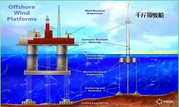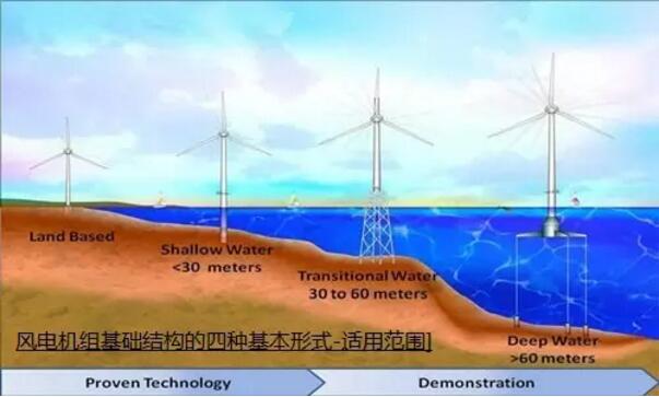 ? 浮式基礎(chǔ)—該基礎(chǔ)結(jié)構(gòu)適用于>60m的深水域,由于其不穩(wěn)定,意味著僅能應(yīng)用于海浪較低的情況。聽說目前最牛的可以在30米水深就能用浮式的。不過沒有工程實例。