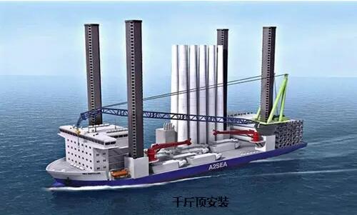海上風(fēng)電機組的安裝可通過千斤頂駁船或者浮吊船完成。