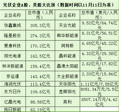 就是上表中所有在美上市企業(yè)加一起,總市值也只有36.31美元(約合246.9億元人民幣),也達(dá)不到一個(gè)隆基股份的274.2億元,更不要說(shuō)協(xié)鑫集成的305.3億元。