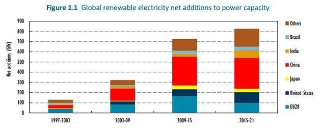 IEA預(yù)計,截止2021年,超過1/3的全球太陽能光伏和陸地風(fēng)力發(fā)電產(chǎn)能將落戶中國。