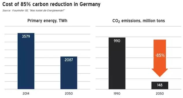 中國儲能網(wǎng)訊:德國能源轉型方向已定,到2050年二氧化碳排放量要比1990年下降85%左右,從9.9億噸降至1.48億噸。
