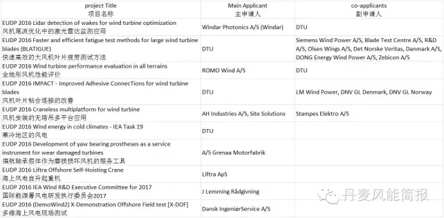 丹麥2016年EUDP項(xiàng)目資助的風(fēng)電研發(fā)和示范項(xiàng)目