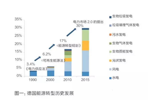 然而能源互聯(lián)網(wǎng)構(gòu)劃的愿景遠(yuǎn)不止這些,這篇包含大量行業(yè)前沿技術(shù)創(chuàng)新內(nèi)容的文件最強(qiáng)調(diào)的卻不是技術(shù),而是“三分技術(shù)、七分改革”。能源互聯(lián)網(wǎng)的建設(shè)需要什么樣的能源體制機(jī)制改革?德國電力市場2.0可以說為中國能源體制改革,特別是電力體制改革提供了一個(gè)很好的范本。首先要明確,電力體制改革的核心目標(biāo)不是市場化本身,而是持續(xù)提升可再生能源占比,以及基本淘汰化石能源的遠(yuǎn)期目標(biāo)。根據(jù)中國2030年可再生能源在一次能源中占比重20%的目標(biāo),大體可以粗略地測算出可再生能源占電力比重45%左右的目標(biāo),這就是15年后的電力市場要完成的歷史任務(wù)。3月3日,國家能源局發(fā)布《國家能源局關(guān)于建立可再生能源開發(fā)利用目標(biāo)引導(dǎo)制度的指導(dǎo)意見》,明確了2020年非水可再生能源配額為9%,這是一個(gè)標(biāo)志性的政策突破。
