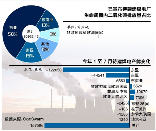 報告數(shù)據(jù)顯示,如果目前全球在建或是待建的燃煤電廠全部投產(chǎn),在其40年左右的生命周期內(nèi),預(yù)計將排放2202.41億噸二氧化碳,超出了將氣溫增加控制在1.5攝氏度之內(nèi)的排放量大約66%。
