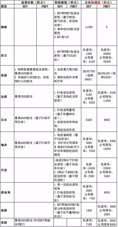 綜觀各國的財(cái)稅激勵政策,以及補(bǔ)貼政策、稅收減免以及燃油節(jié)約成本帶來的總的激勵額度:
