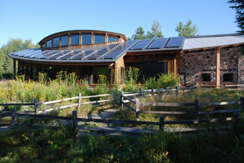 在美國明尼蘇達(dá)州德盧斯的哈特利自然中心和屋頂上設(shè)置的太陽能電池板(攝影:Sunverge Energy)