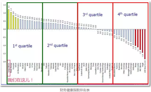 中國儲(chǔ)能網(wǎng)訊:近日,PHOTON Consulting發(fā)布了2016年第一季度全球光伏企業(yè)“鐵人三項(xiàng)”(財(cái)務(wù)健康指數(shù)、盈利與成本控制力、長期發(fā)展戰(zhàn)略)競爭力報(bào)告《PV Triathlon》,樂葉光伏母公司隆基股份從“參賽”的企業(yè)中脫穎而出,綜合評(píng)分位列第一梯隊(duì),財(cái)務(wù)健康指數(shù)排名第一。