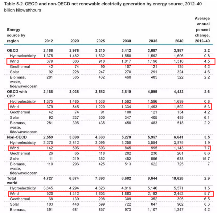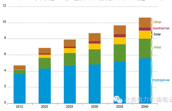 從2012年至2040年,非OECD國家太陽能發(fā)電年增速為15.7%,風(fēng)電是7.7%,地?zé)崾?.6%。OECD國家,風(fēng)電、太陽能、地?zé)岬陌l(fā)電年增速基本都在4.5%左右。