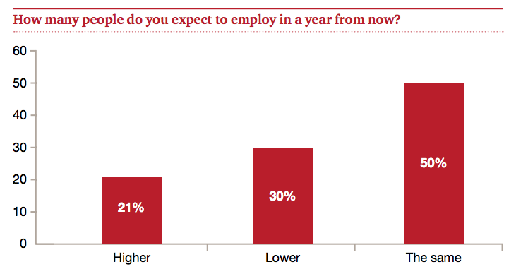 “脫歐”后英國(guó)會(huì)面臨經(jīng)濟(jì)衰退的局面,失業(yè)只是一個(gè)額外打擊。只有21%的受訪者表示,他們將在未來(lái)12個(gè)月雇傭更多的工人。