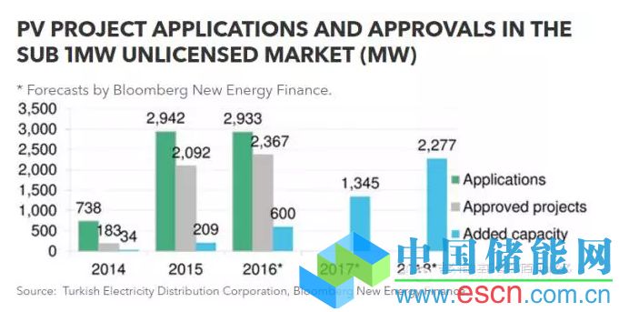 中國儲能網(wǎng)訊:土耳其的光伏容量預(yù)計將在2017年初達(dá)到1GW大關(guān),而該國在2014年的水平仍僅為40MW。過去,土耳其容量低于1MW的光伏項目存在政策監(jiān)管的漏洞,因而該國的太陽能市場中出現(xiàn)了大量低于1MW的免許可光伏項目。最近,土耳其政府已經(jīng)修改了相關(guān)政策框架,控制1MW以下小容量細(xì)分領(lǐng)域的爆發(fā)性增長。彭博新能源財經(jīng)對此進(jìn)行了分析,以了解土耳其政府的政策改變是否會達(dá)到他們預(yù)期的效果。