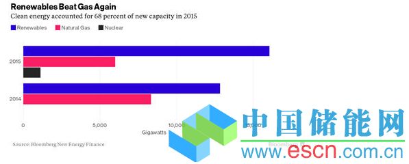 中國儲能網(wǎng)訊:2015年可再生能源已經(jīng)成為美國新增發(fā)電的最大來源,成本持續(xù)下降以及政府激勵使得風電和太陽能發(fā)電愈加有可能代替化石燃料。
