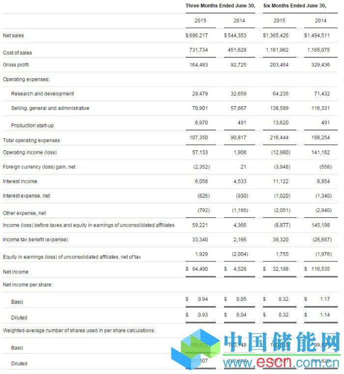 中國儲能網(wǎng)訊:美國碲化鎘(CdTe)薄膜太陽能電池模組制造商First Solar,Inc.于美國股市4日盤后公布2015年第2季(4-6月)財報:營收年增65%至8.96億美元;每股盈余達0.93美元。根據(jù)彭博社的調查,分析師原先預期FirstSolar第2季營收將達7.88億美元、每股盈余為0.50美元。First Solar今年第1季虧損6,230萬美元,2012年以來首見營運赤字。