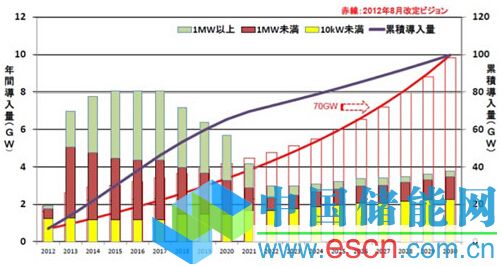 JPEA于2013年12月發(fā)行了“JPEA PV Outlook 2030”,提出了“2030年日本的光伏發(fā)電累計導入量目標為100GW”。2015年4月又出了其姊妹篇,將2013年版中2020年日本的累計導入量49.4GW的預(yù)測上調(diào)到了65.7GW。