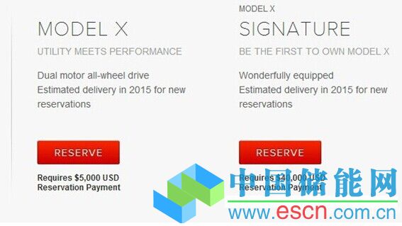 今年2月,特斯拉美國(guó)官網(wǎng)MODEL X開始接受預(yù)訂,預(yù)付訂金方式分為兩種,最高額訂金可在2015年成為第一批MODEL X車主,交付低額度訂金車輛交付的時(shí)間無法確定。在中國(guó),MODEL X同樣可以預(yù)訂,訂金為3萬元人民幣,關(guān)于交付時(shí)間官方?jīng)]有明確表示。