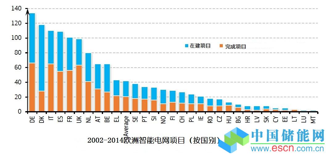 據(jù)歐洲聯(lián)合研究中心(JRC)統(tǒng)計數(shù)據(jù)顯示,2002-2014年,歐洲共開發(fā)智能電網(wǎng)項目459個,累計投入達(dá)到31.5億歐元(約合人民幣195.5億元),其中,在建項目221個,投入約20億歐元(約合人民幣124億元),完成項目238個,投入約11.5億歐元(約合人民幣71.4億元)。