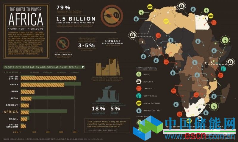 中國儲(chǔ)能網(wǎng)訊:不僅僅是能源的未來,而且非洲整個(gè)大陸都將依賴于可再生能源。如今眾多國家(雖然進(jìn)展緩慢)正投資于能源產(chǎn)業(yè),但截止至目前為止,非洲電網(wǎng)仍然不能延伸至絕大多數(shù)的人口,并且僅有20%的非洲家庭用上了電。在非洲建設(shè)的無數(shù)小型分布式發(fā)電站主要是為了滿足當(dāng)?shù)氐碾娏π枨蟆T谶@樣的情況下,坐落于有利地形的可再生能源發(fā)電站(包括水電、風(fēng)電、光伏及地?zé)幔┚芎芎玫貪M足電力需求以及每個(gè)地區(qū)的特殊發(fā)電潛能。