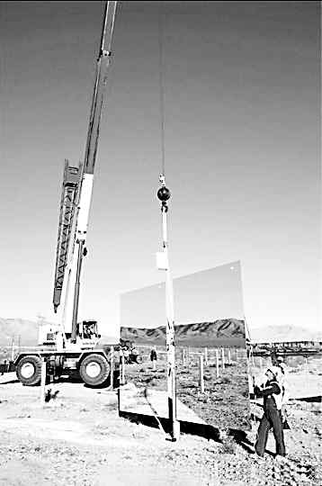 在現(xiàn)場建成臨時工廠,組裝凹面鏡,形成定日鏡,以跟蹤太陽的運動,可以使光線全天都集中在同一點。在工廠內,鏡子由機器人定位,沿軌道輸送,工人們用螺絲把它們固定到金屬框架上,而發(fā)動機會使鏡子轉動,以朝向太陽。 |
