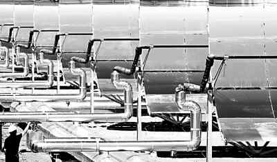 布萊斯太陽能發(fā)電站占地約2800公頃,建在荒漠土地上。它通過龐大的凹面鏡陣將太陽光轉變成熱能加熱蒸汽,驅動渦輪機發(fā)電。這一項目將分兩期建設,每期工程裝機容量均為50萬千瓦,全部建成后,其產(chǎn)生的電能足以滿足75萬個家庭使用。