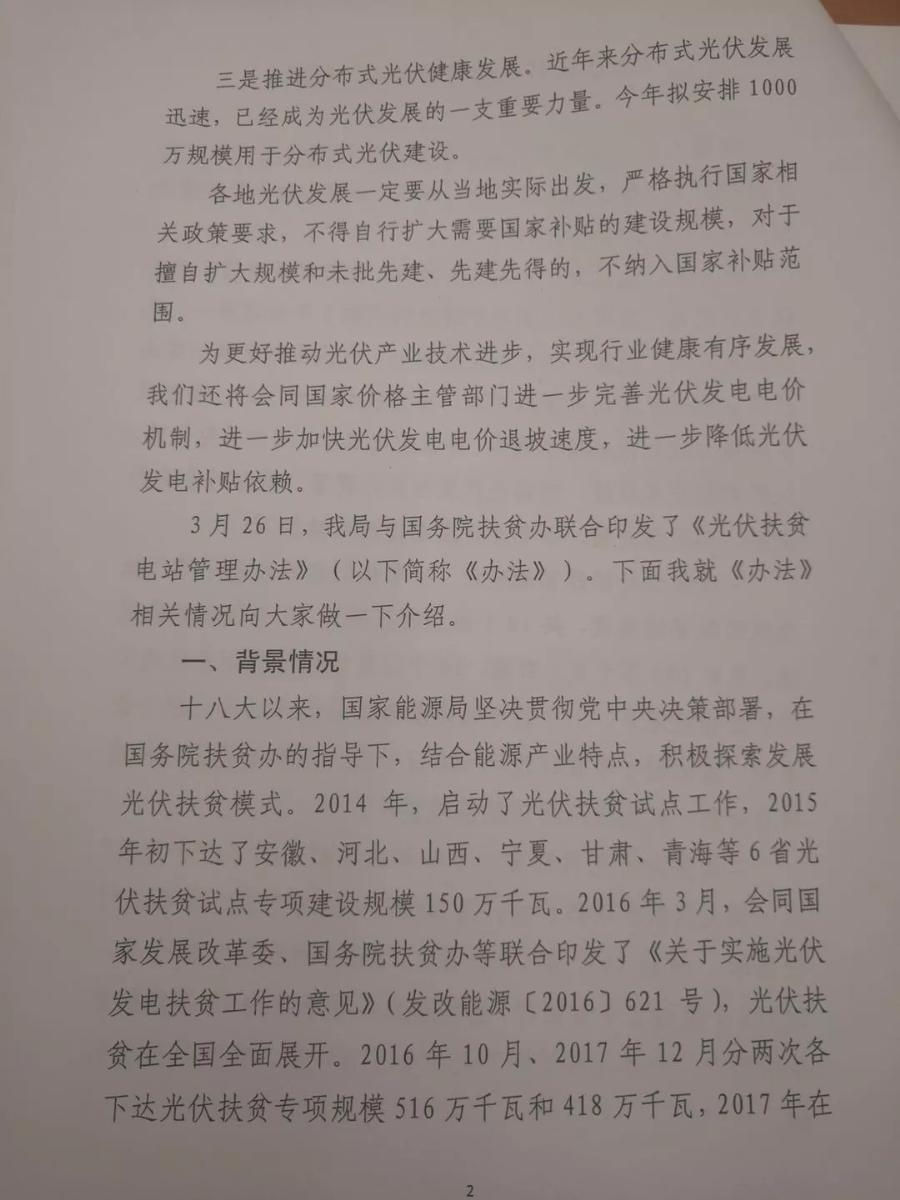 另外,新能源和可再生能源司副司長李創(chuàng)軍在答記者問時透露,可再生能源配額制(最終稿)初定今年上半年出臺?!笆濉惫夥鲐氂媱澤陥蠊ぷ?,進(jìn)展緩慢,報送質(zhì)量層次不齊。第一批就有235個縣沒通過國家扶貧辦的光伏扶貧信息管理系統(tǒng)的材料審核,申報過程中存在諸多問題。今年計劃下達(dá)第二批光伏扶貧計劃,如果各地申報的材料合格申報通過,就能早點下發(fā)。