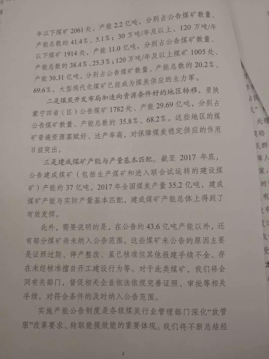 截至2017年底,全國公告生產(chǎn)和建設(shè)煤礦4980處、產(chǎn)能43.6億噸,其中生產(chǎn)煤礦3907處,產(chǎn)能33.4億噸;建設(shè)煤礦1156處(含生產(chǎn)煤礦同步改建、改造項目83處)、產(chǎn)能10.2億噸。建設(shè)煤礦中已進(jìn)入聯(lián)合試運轉(zhuǎn)的230處,產(chǎn)能3.6億噸。公告的具體煤礦名單可查閱國家能源局網(wǎng)站。