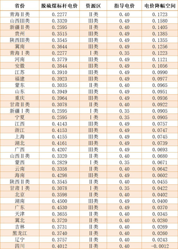 以下為各省電價降幅空間: