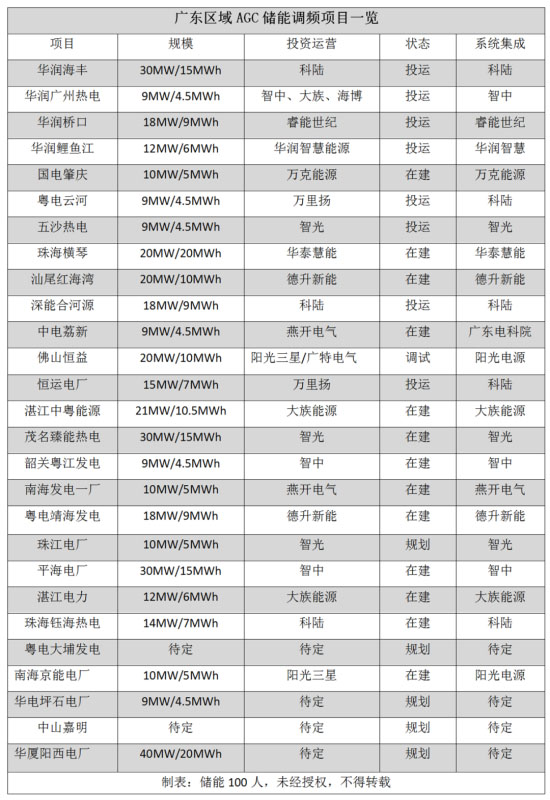 在珠江電廠之前,廣州發(fā)展集團控股或持股的粵江發(fā)電、中電荔新、臻能熱電、紅海灣和惠來電廠(粵電靖海)等公司已先行啟動AGC儲能調(diào)頻項目的招標(biāo)與建設(shè)工作。