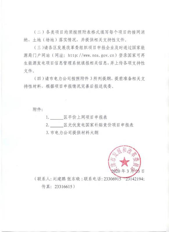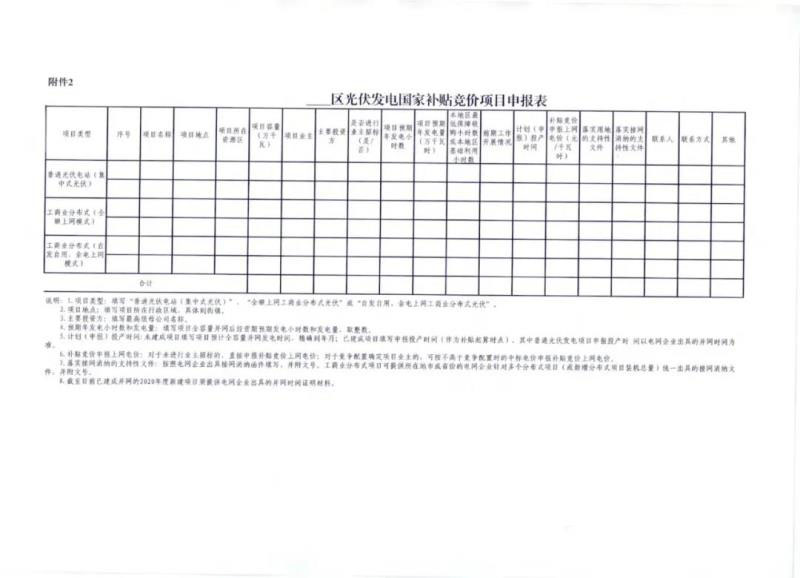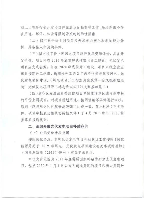 競(jìng)價(jià)項(xiàng)目務(wù)必于2020年6月10日完成競(jìng)價(jià)項(xiàng)目的申報(bào)工作,逾期不報(bào)視為放棄。其中,申報(bào)集中式光伏電站項(xiàng)目,未納入全市電力發(fā)展規(guī)劃的,需在4月30日前向市能源局報(bào)送規(guī)劃。