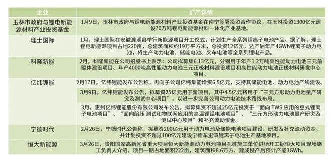 2020年第一季度,受春節(jié)假期及新冠疫情的影響,我國的動力電池產(chǎn)銷情況及裝機(jī)量受到大幅沖擊。但仍有產(chǎn)業(yè)鏈企業(yè)積極擴(kuò)張產(chǎn)能,據(jù)EnergyTrend梳理發(fā)現(xiàn),2020年一季度產(chǎn)業(yè)鏈投資金額已超1844億元。但由于1月底至二月中旬是鋰電產(chǎn)業(yè)投擴(kuò)產(chǎn)事件的空白期,項目主要集中在疫情爆發(fā)前和3月份。