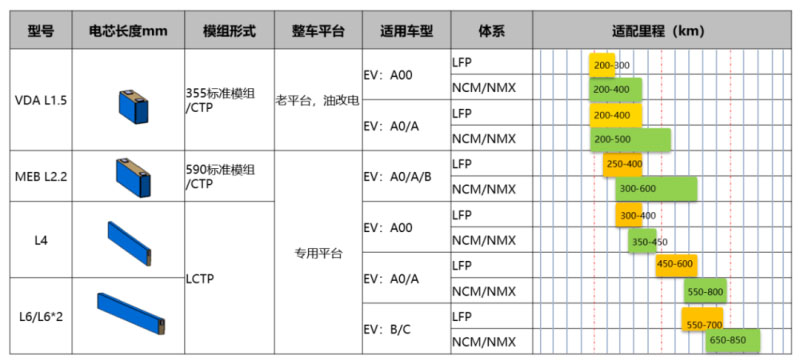 圖為蜂巢能源多種材料體系L6疊片電池覆蓋車型