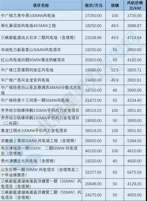 其他項(xiàng)目采購(gòu)風(fēng)機(jī)價(jià)格在3800元/千瓦~4200元/千瓦之間。