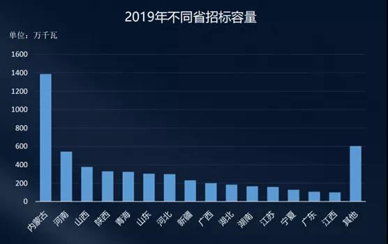 數(shù)據(jù)顯示,2019年內(nèi)蒙古地區(qū)風(fēng)電招標(biāo)量近1400萬千瓦。其次是河南省,風(fēng)電招標(biāo)量在480萬千瓦左右。