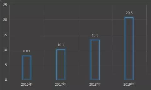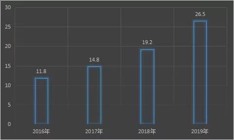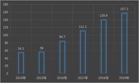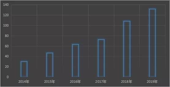 2014年-2019年全國鋰離子電池產(chǎn)量(億只)
