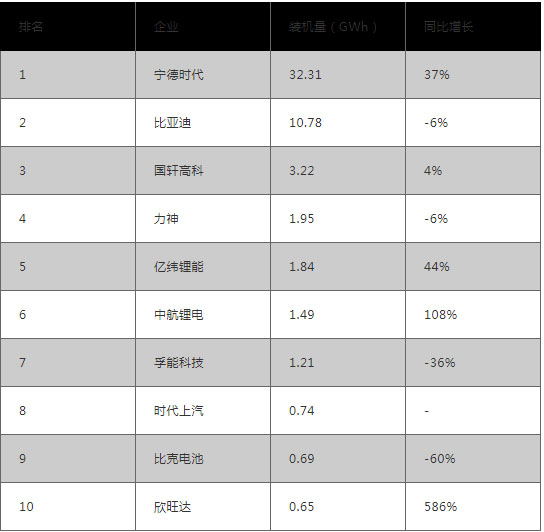 2019全年新能源汽車?yán)塾?jì)生產(chǎn)約117.7萬臺,同比下降4%。全年累計(jì)動力電池裝機(jī)量約62.38GWh,同比增長9%。其中,TOP10企業(yè)合計(jì)裝機(jī)達(dá)54.88GWh,占整體裝機(jī)量的87.98%。