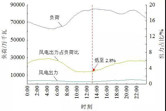 圖2 負(fù)荷創(chuàng)新高時風(fēng)電出力情況