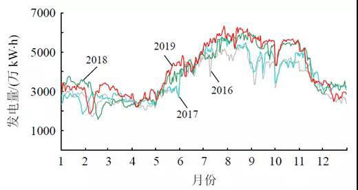 圖1 2016—2019 年四川水電逐日平均出力過程