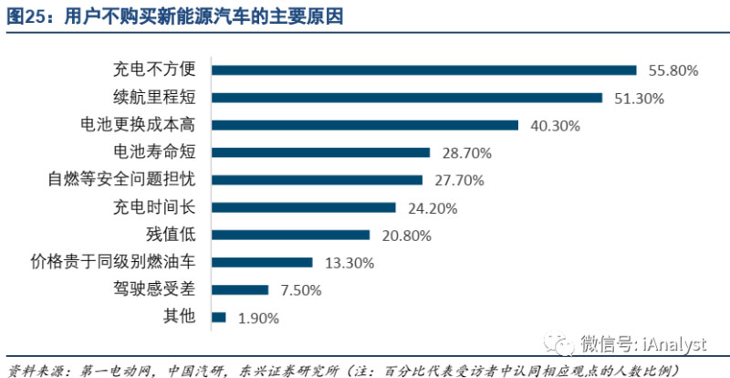 動力電池的安全性、續(xù)航里程、成本、壽命等是影響消費者購買新能源汽車的重要因素。據(jù)第一電動網(wǎng)2020年1月15日援引中國汽研、汽車之家及CEVE規(guī)程聯(lián)合編寫《2019中國汽車技術(shù)發(fā)展與消費者洞察研究報告——新能源汽車篇》內(nèi)容,在制約用戶購買新能源汽車的多個因素中,除了“駕駛感受差”外,多數(shù)都和動力電池有關(guān),如:續(xù)航里程短、電池更換成本高、電池壽命短、自燃等安全問題擔憂,等等,如圖25所示。