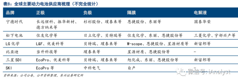 因為動力電池產(chǎn)業(yè)供應(yīng)體系主要集中在中日韓地區(qū),中國產(chǎn)業(yè)鏈優(yōu)質(zhì)企業(yè)有望直接或間接進入海外車企供應(yīng)鏈。海外市場的繁榮一方面將帶來第三方動力電池企業(yè)和零部件企業(yè)采購量的增加,另一方面將帶來動力電池產(chǎn)業(yè)的本土化推進,這是海外動力電池產(chǎn)業(yè)鏈投資機會的兩個維度。