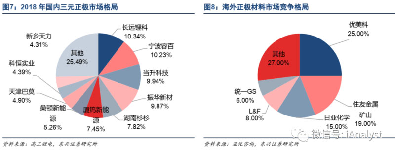 國內(nèi)和國外正極材料行業(yè)競爭格局如圖7和圖8所示。