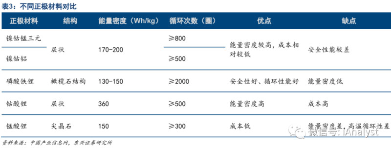 不同正極材料的性能和優(yōu)缺點對比如表3所示。