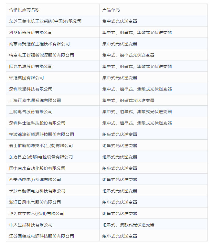 近日,國家電力投資集團有限公司(簡稱“國家電投”)發(fā)布光伏逆變器供應(yīng)商資格評審結(jié)果,公布了合格光伏逆變器供應(yīng)商名錄。